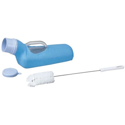 冬場でも冷たくなく、目隠しにもなるカバー付。透明容器なので尿観察に便利です。受尿口は柔らかい素材です。※フタは固定タイプではないので、簡単に着脱できます。 |