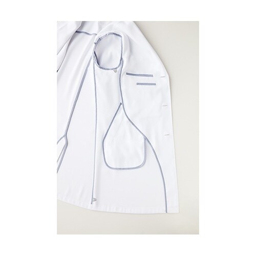 ”着る”から”羽織る”へ。洗練された白と上質な素材をこだわり抜かれたデザインに落とし込んだドクターコート。小松マテーレのオリジナルラベルは、限られたウエアだけに許された、高品質の証です。洗練されたブル |