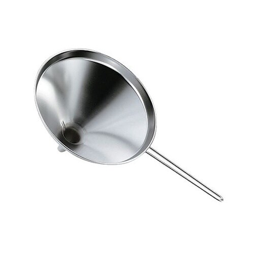 持ち手付きのロートです。耐久性と耐食性に優れたステンレス製です。