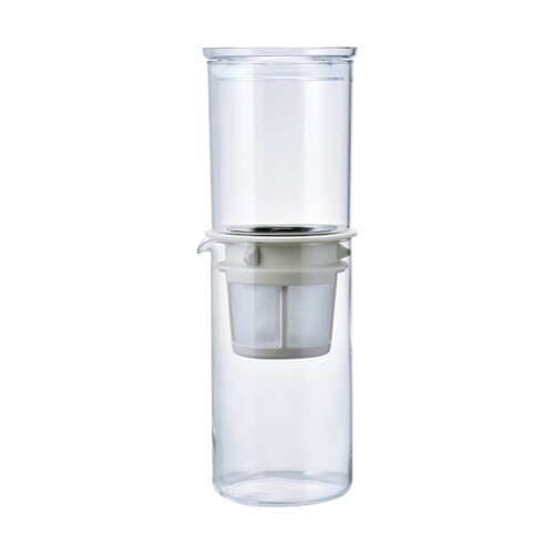 自然な水の滴下でおいしいアイスコーヒーを作ります。コーヒー粉を入れて、上ボールに水を注ぎ、45分−1時間で水たてコーヒーができます。スリム形状冷蔵庫保存が可能。実用容量 600mL |