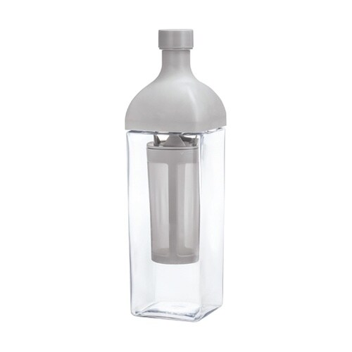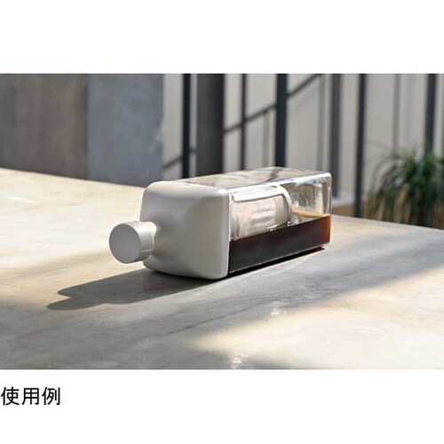 角型形状の水出しコーヒーボトルコーヒー粉と水だけでアイスコーヒーが抽出できます。ストレーナーにコーヒー粉を入れ、注ぎ口にセットしたら少量ずつ水を注ぎます。水を注ぎ終えたらキャップをして、ボトルをゆっく |