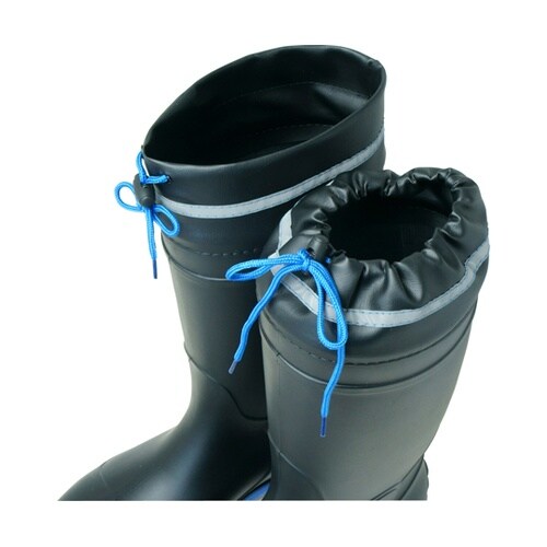 フード付で履き口からの異物の進入を防ぎます。フードの反射テープで夜間でも視認性がアップ。PVC(塩化ビニール製)抗菌防臭裏地付。クッション性と通気性に優れたEVA製の中敷を搭載し、足の疲れとムレを軽減
