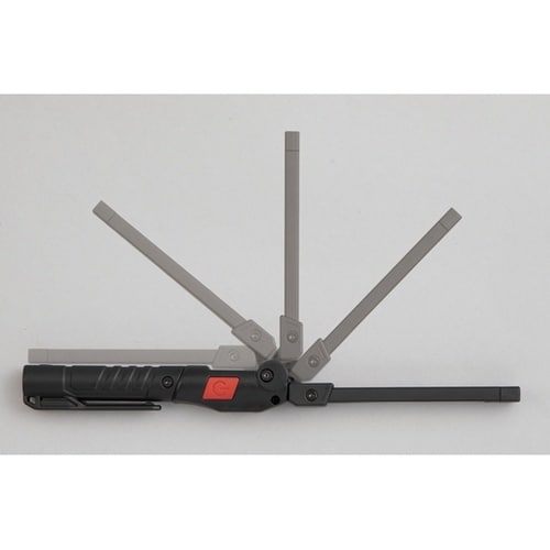180°無段階で開閉が可能な折りたたみタイプ。マグネットを本体2方向に装備(メイン、ボトム)、磁性の帯びる壁や柱、什器等に取付けて使用が可能。コンパクトなサイズで狭い隙間も照らしやすい。点灯パターンは |