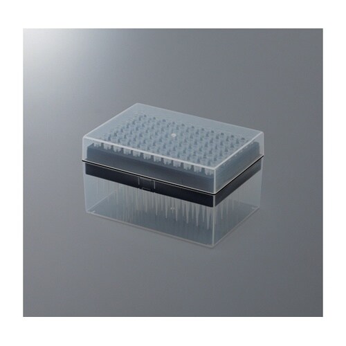 目盛り付きチップです。プレート中央の段差によってマルチチャンネルピペットにしっかりフィットします。 |