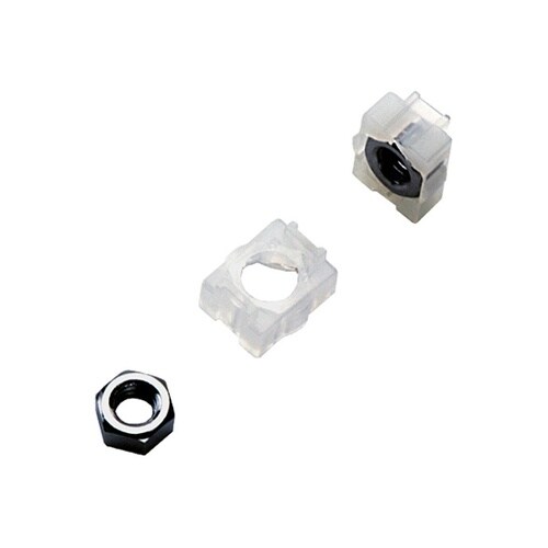 フレームの特設溝にはいり、任意の高さで止まるように設計されたシェル付のM5六角ナット又はM5×12六角ボルトです。ラック内に取り付ける機構部品或いは内装電子部品を正確かつ早く位置決めして締結できるよう |