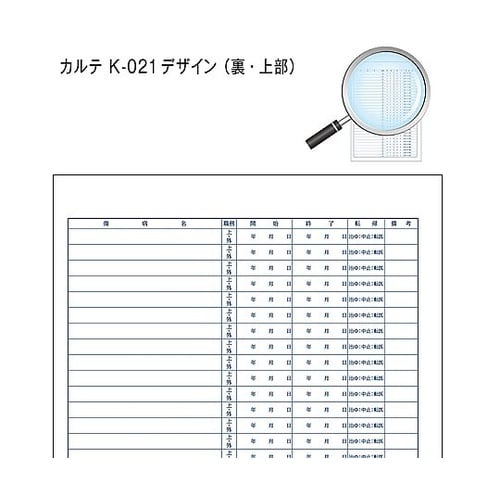 カルテ1号用紙です。診療報酬明細書等の様式変更が示され、新たに被保険者証記号・番号の後に「(枝番)」項目が設けられました。本商品も対応済みです。 |