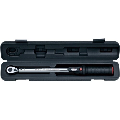視認性の高い目盛を採用し、より快適なトルク調整作業が可能。あらかじめ設定したトルクに達すると、軽いショックが手に伝わったり、「カチッ」という音がして締付け完了が確認できます。グリップには劣化に強く、フ |