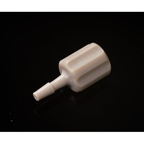 シリコンやタイゴンなど軟質チューブ用で、1/4−28UNFメスネジ付きです。オスネジとメスネジを組み合わせると同径または異径チューブラインが形成できます。メスネジ部長は9.5mm。オールPEEK製で、 |