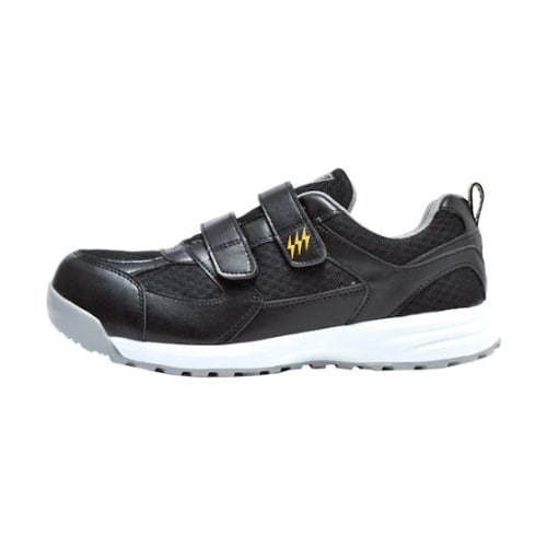 アッパーに通気性のいいメッシュを使用した静電気帯電防止セーフティシューズです。靴底の導電配合ラバーから人体や衣服に帯電した静電気を床面へと逃がします。フィット感のあるカップインソールの履き心地も抜群で |