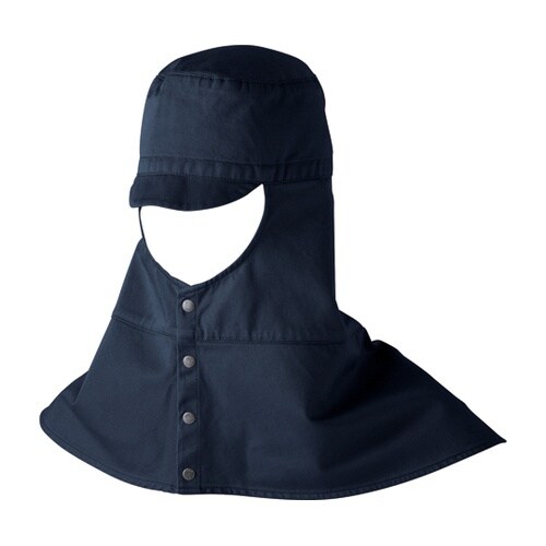 溶接作業の火花から顔を保護する綿100%の溶接帽子ロング丈。通気性・吸水性に優れた高品質綿100%をワンウォッシュし、さらに肌触り・風合いのよい仕上げてとしたシリーズ。上着の背面タック、パンツの膝ダー |