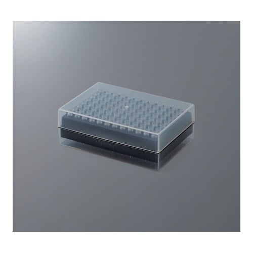 目盛り付きチップです。プレート中央の段差によってマルチチャンネルピペットにしっかりフィットします。 |