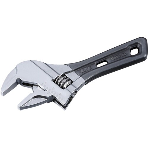 ショートボディで狭い場所での使用が可能です。三面接触とガタをおさえた設計で、ボルトがなめにくく、安定した締め緩めが可能です。配管・水回りの袋ナットなどの大径ナットにも対応。ハンドル部には握り心地を考慮 |
