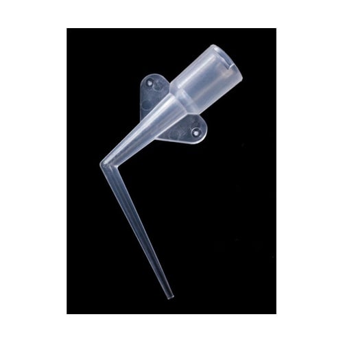 先端がフラットカットの極細ノズル付きメスルアーアダプターです。非金属のため、ノズルを極細チューブに差し込めばオール樹脂のチューブラインが形成できます。また柔軟性ノズルは狭い場所や各種ディスペンス作業に