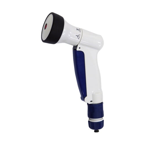 ベランダやお庭での散水、清掃。車等の洗浄。ワンタッチフロント方式で手の負担軽減。通水・止水がワンタッチで出来る。スリム形状で持ちやすい。ノズルを外しても水が噴き出ないストップコネクター付き。 |