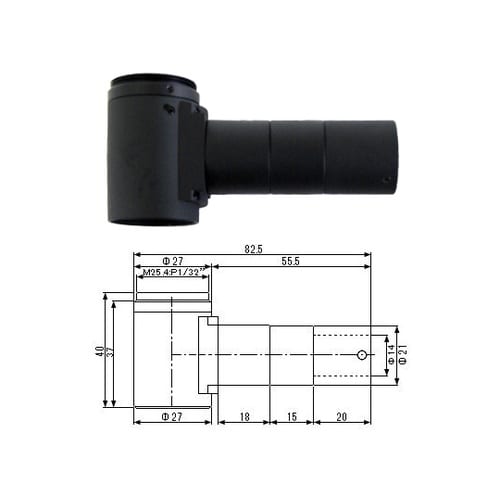 ハーフミラーを内臓したCマウントに対応した同軸落射鏡筒です。鏡筒の横方向からの照明(光ファイバー、LED、タングステンランプ等)の光をハーフミラーで反射させて、対物レンズを通して照射する同軸落射照明に |