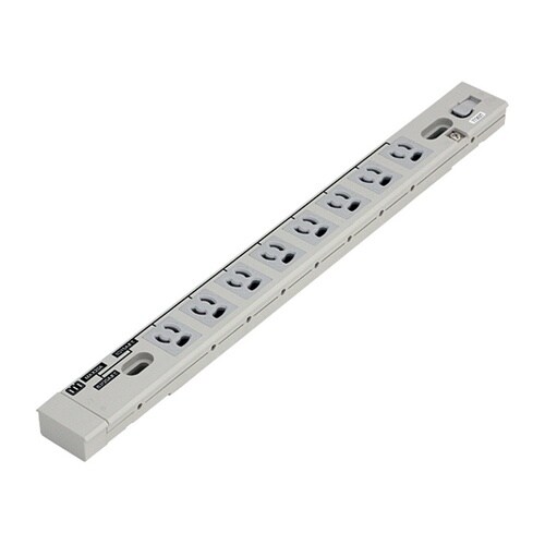 コンセント口数が8個のユニットです。接地付と接地無しの一般プラグが使えます。本製品の連結や各種ユニットを連結して使用できます。DY−R2705−20は、合計20Aまで使用できます。コンセントは抜け止め |