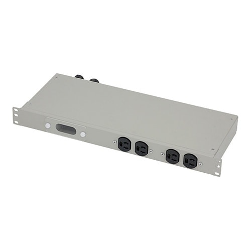 15A仕様のサーキットブレーカー1個とコンセントが組み込み配線された、19インチマウント型1Uサイズのブレーカーパネルです。コンセント数は、2個(前面のみ)と、5個(前面と後面)から選択可能です。アー |