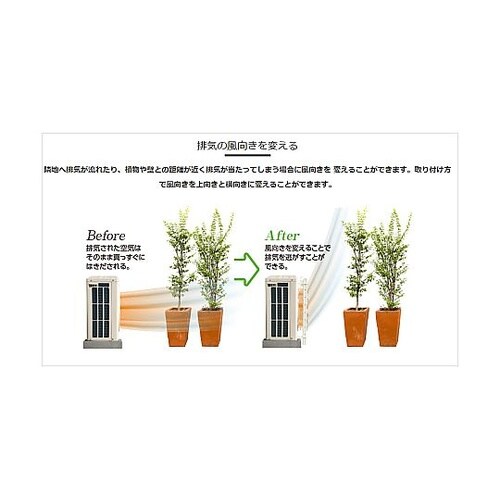 室外機に取り付けて排気風の風向きを変えることができます。道路に面していて歩行者に風があたってしまう。室外機が原因でご近所トラブルになってしまった。そんなお悩みも室外機ルーバーで即解決!!!