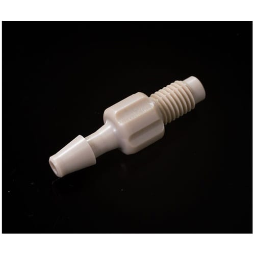 シリコンやタイゴンなど軟質チューブ用で、1/4−28UNFオスジ付きです。オスネジとメスネジを組み合わせると同径または異径チューブラインが形成できます。オスネジ部長は10.5mm。オールPEEK製で、 |