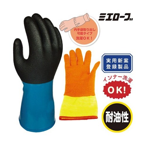 PVCとNBRのハイブリッド耐油性に自信ありインナー手袋が脱着でき洗濯が簡単東レの吸湿発熱繊維ウォームサーバー使用