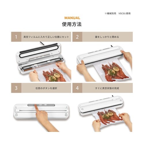 aswill(アスカ)製バキュームシーラー本体VCS01専用バッグ袋タイプ袋状なのでシーリングの手間が減り、使いたい時にサッと使える。※aswill(アスカ)製バキュームシーラー本体VCS01にご使用 |