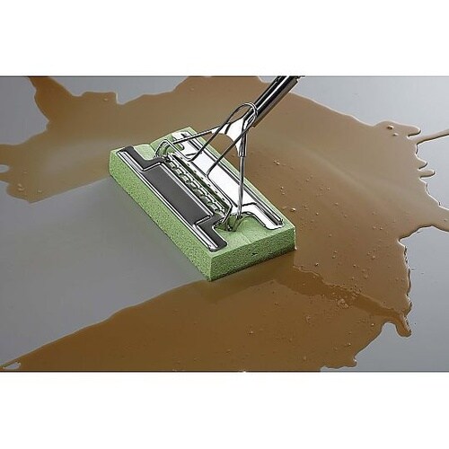 絞り機能付きの水拭き用スポンジワイパー。サビにくく耐久性にも優れたステンレスタイプ。レバー操作で手をぬらさずに床やタイル壁面、ガラスの水拭きが楽に行えます。発塵しにくいセルローススポンジを採用。汚れと |