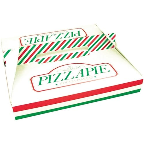 手提タイプのピザ箱です。持ち手が付いていますので、持ち帰りの袋がいりません。 |