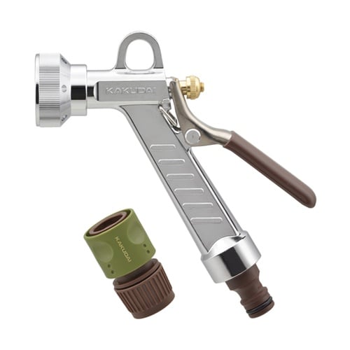 レバー操作で直射・噴霧・止水。内径11−15×外径16−20ミリホース用。ネジニップルを外すと取付ネジG3/4(内ネジ)。 |
