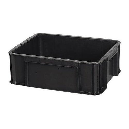 導電コンテナです。スタッキングタイプです。プラスチック特有の帯電性(電気絶縁性)がないので、チリ・ホコリの付着を防ぎます。電子部品・基盤などの保管・搬送に。