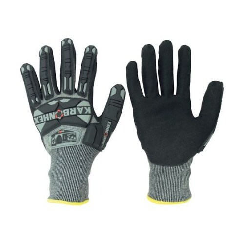 耐切創性+耐衝撃性 今までにない安全性を実現原手は18ゲージの超薄手ガラス繊維入りで耐切創強度が高いニトリルコーティングで耐摩耗性に優れる※回転体に手が巻きこまれるおそれがあるときは、手袋を使用しない |