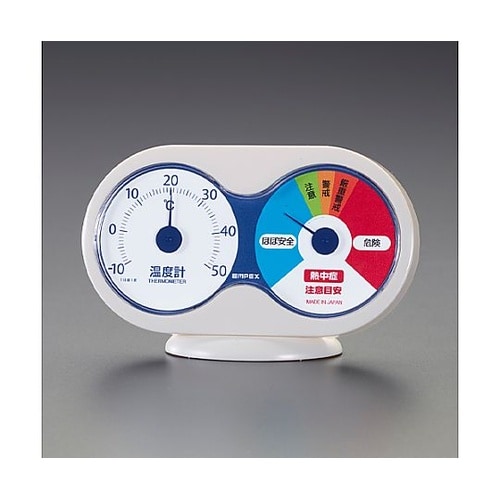 掛・置兼用高温多湿になることで指針が動きレベルが上がる5段階の熱中症注意目安(WBGT参考値)とシンプルなアナログ温度計の一体型です。電池不要、操作不要で設置をするだけで計測をします。電池がいらないア |