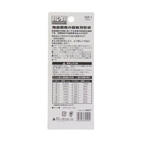 独自開発の4枚刃形状!刃寿命と切れ味が格段に向上!穴あけ・下穴拡大・面取り・バリ取りなどの作業がこれ一本で対応できます。【用途】鉄工品の穴あけ・下穴拡大・面取り・バリ取りなどの作業に。 |