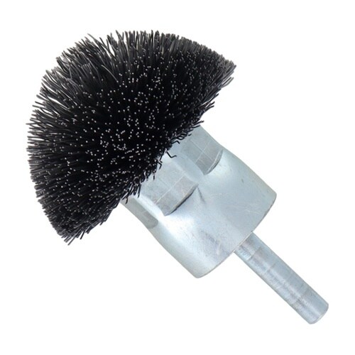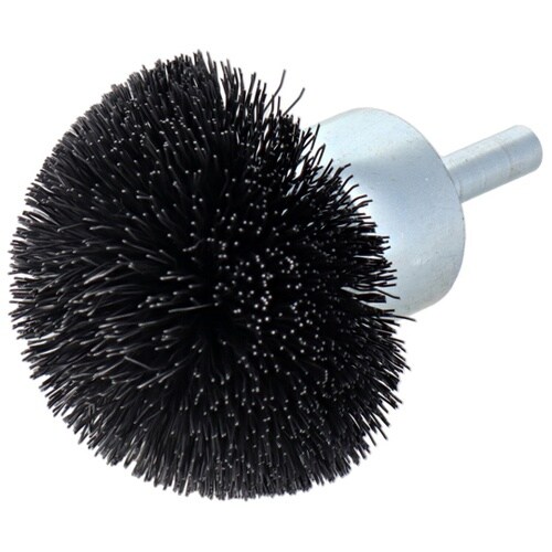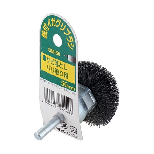 軸付きイガグリブラシ。曲面やパイプの内側などのサビ落とし・バリ取り用。 |