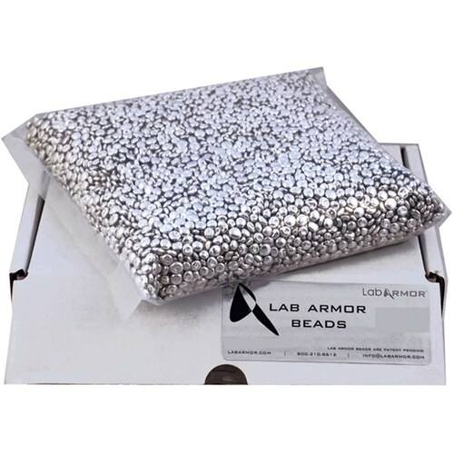 水が媒介する微生物汚染の心配がありません。大きさや形状が異なる容器を共に使用可能で、内容量が減った軽い容器でも自立させることができます。※ビーズの粒の大きさにばらつきがあるため、内容量の体積が上下する |