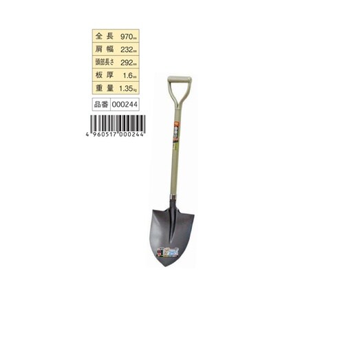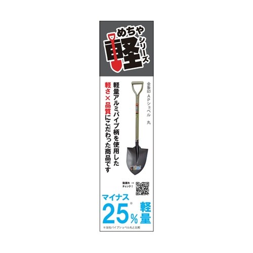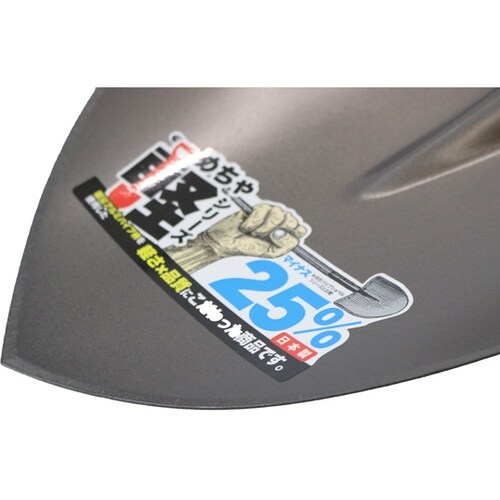 柄部にアルミパイプ柄を採用。柄部にアルミパイプ柄を採用。金象印パイプショベル丸形と比較し、マイナス25%軽量化。頭部(すくい部)はショベル鋼板S50C相当を使用し、焼入れ(強度が上がる、磨耗に強くなる |