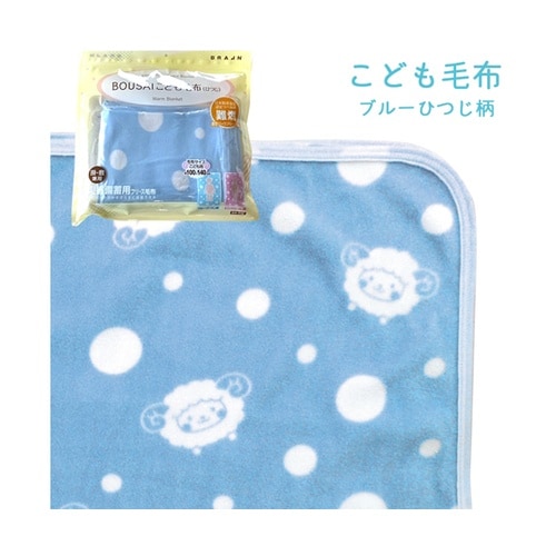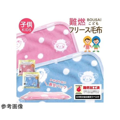 真空パック難燃備蓄用フリースこども毛布(日本防炎協会認定ラベル付)ブルーひつじ柄