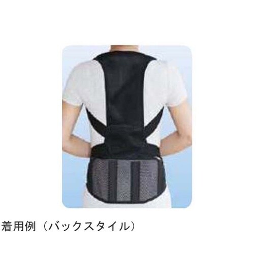 背筋をクロスベルトで締め上げて、すっきりと伸ばし、姿勢を調整します。さらに幅広ベルトが同時に腹部も引き締めます。軽量メッシュ素材で、ムレにくく快適にサポートします。 |