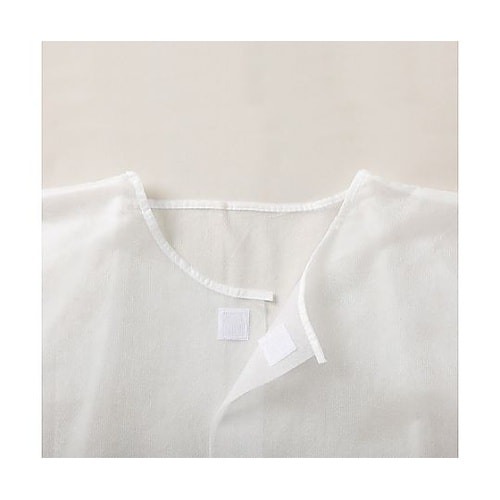 不織布使い捨て用の白衣です。前3箇所面ファスナー付PP素材のため撥水性に優れ、汚れを防ぎます。袖絞り着脱が容易な面ファスナー仕様 |