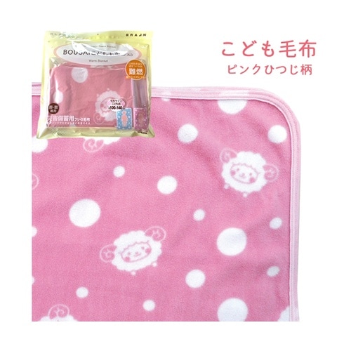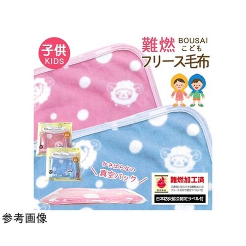 真空パック難燃備蓄用フリースこども毛布(日本防炎協会認定ラベル付)ピンクひつじ柄
