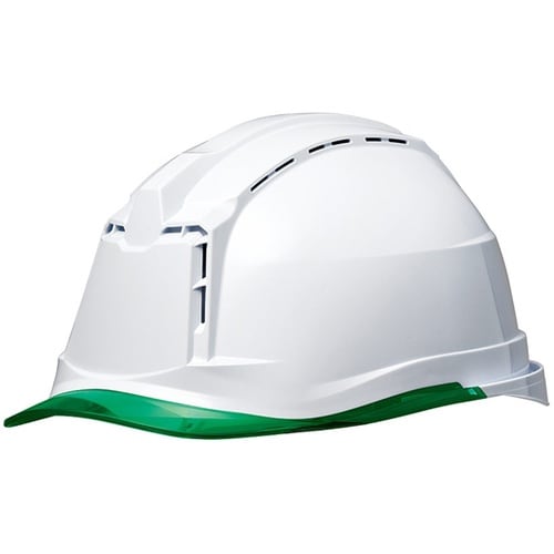 PC製ヘルメット(αライナー・クリアバイザー・通気孔) ホワイト/グリーン