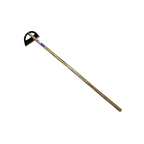頭部は窓あきタイプの草削り。頭部は焼入れ(強度が上がる、磨耗に強くなる)・焼戻し(弾力性が上がる)の熱処理を行っています。木柄は椎(しい)材使用により軽量化を図りました。畑、畦等の除草作業に。 |