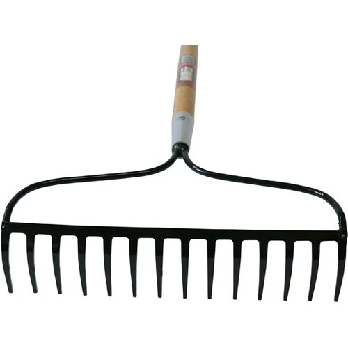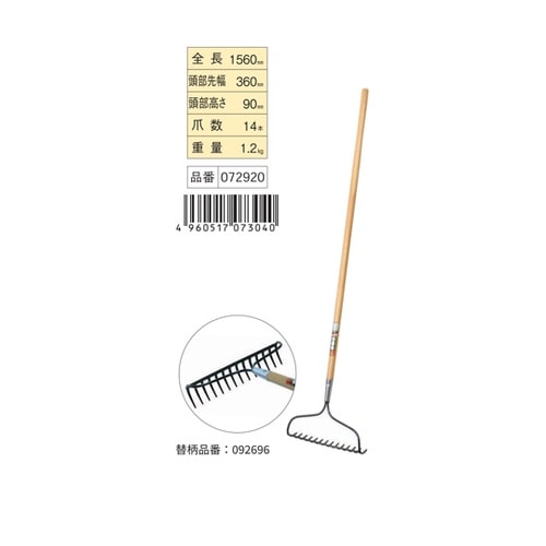 爪部はスチール製14本爪タイプです。清掃、整地作業に適しています。爪部はスチール製14本爪タイプです。清掃、整地作業に適しています。頭部先爪に熱処理を施し曲がりにくく、靭性(粘り強さ)、耐磨耗性に優れ |