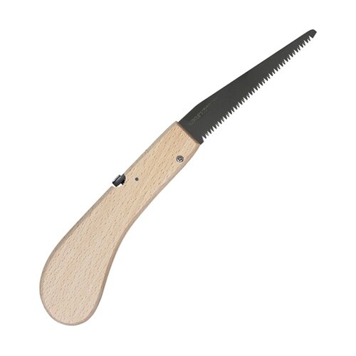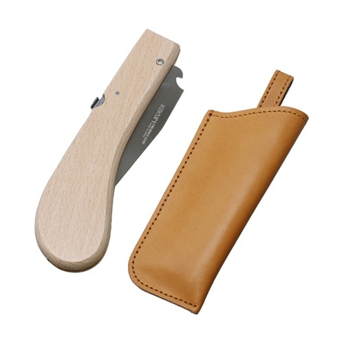 細枝や細い薪の切断に。折込式なのでコンパクトになり収納・持ち運びに便利です。衝撃焼入れで切れ味が長持ちします。サビ防止にメッキ処理が施されています。姫路レザーを使用した本革収納ケース付き。 |