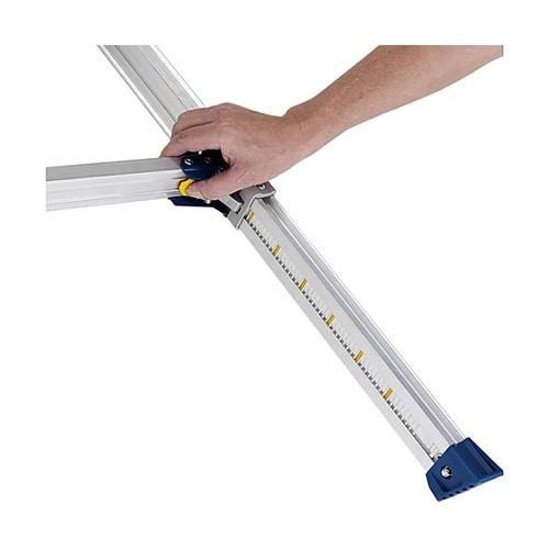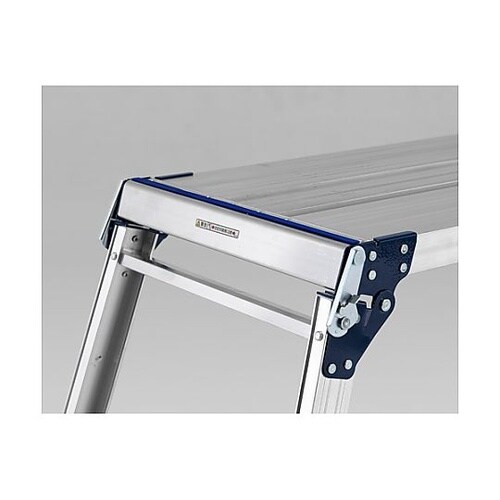 アルミ合金製天板両端に転落予防プレート付脚の長さを調整できます。6mmピッチこのサイズのみ、手掛かり棒(別売/(左)EA905DH−21、(右)EA905DH−22)を取り付けることができます。 |