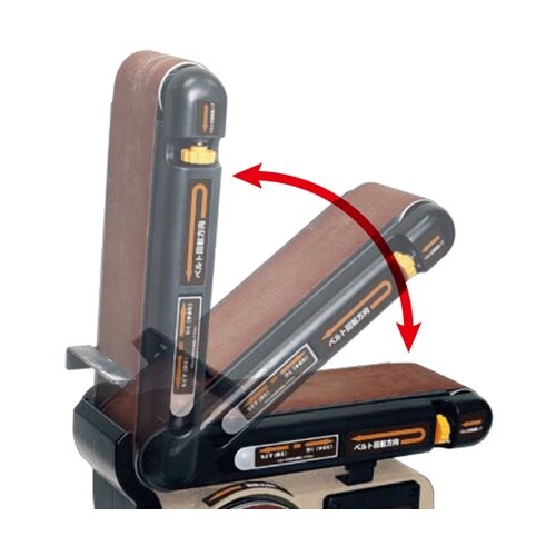 ベルトサンダーは水平・垂直にも使用可能。ワークテーブルは45°可変でき、作業小売地アップ。曲面の研磨も楽々できる。ディスクペーパーはワンタッチ式で着脱。【用途】木工・非鉄金属の研磨作業に |
