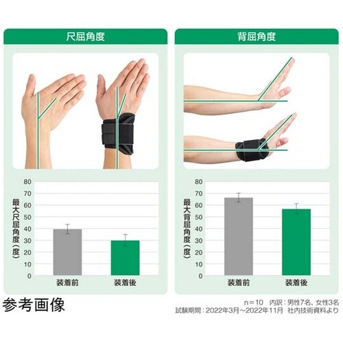 把持動作の確保と、手関節のサポートを両立する手関節サポーターです。手掌部に生地がかからない形状により、把持動作が可能です。母指ループにより装着の再現性を高め、二股の手首ベルトにより操作性の向上を実現し