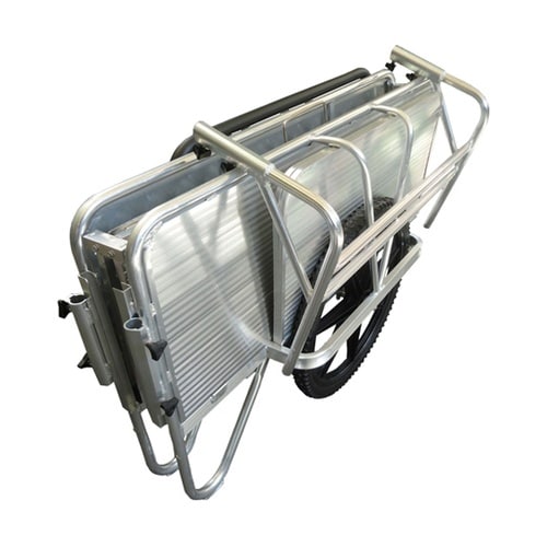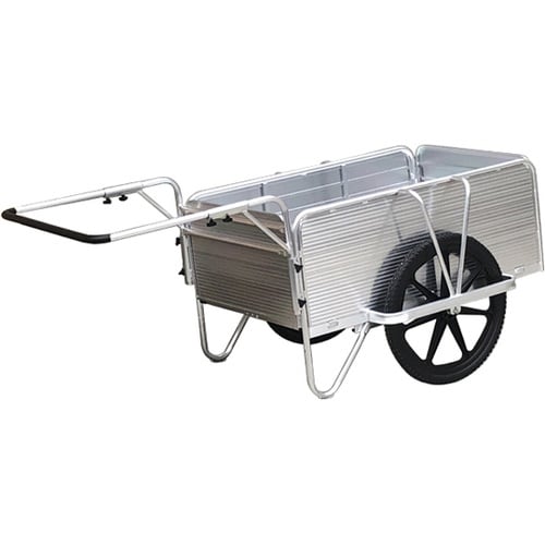 アルミ製のリヤカー。安心のノーパンクタイヤ。軽量でサビにくい。 |