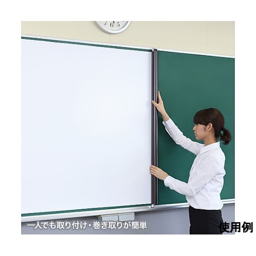マーカーペン(赤・青・黒各1本)、イレーサー、トレー付黒板に貼りやすいマグネット式プロジェクタースクリーン。学校の黒板の高さ(1200mm)を考慮し、高さを1130mm(バーは1180mm)に設定して |