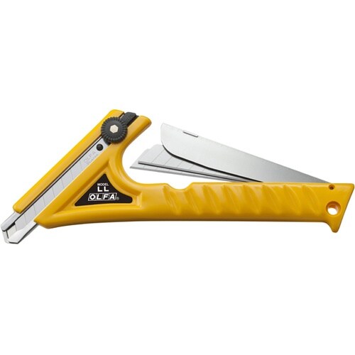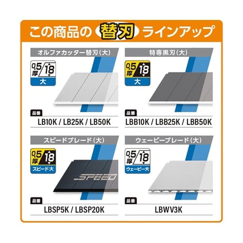 両手でしっかり持つことができるので、より強力な切断が可能です。ベニヤ板、原皮、ゴム、厚紙などの切断に便利なネジロック式大型カッター。 |