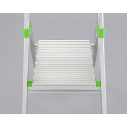 修理体制が整ったリサイクル可能な踏み台。折りたたみは、ワンタッチで楽々。収納時の厚みは9.6cm。エコマーク認定の上枠付踏台 |